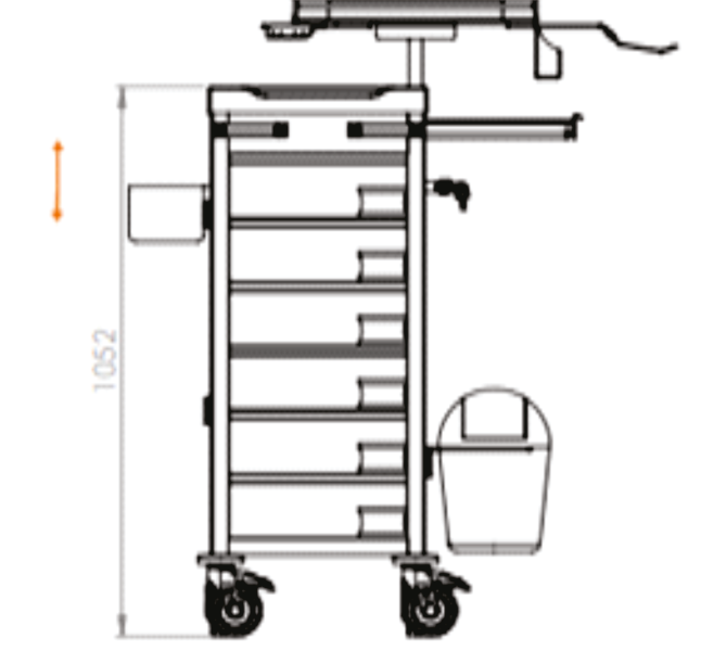 • Superfície superior: Ampla e resistente, adequada para acomodar equipamentos médicos de uso frequente, com bordas elevadas para prevenir quedas acidentais de objetos.​