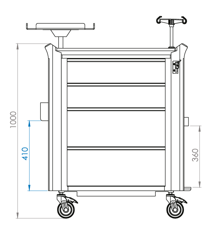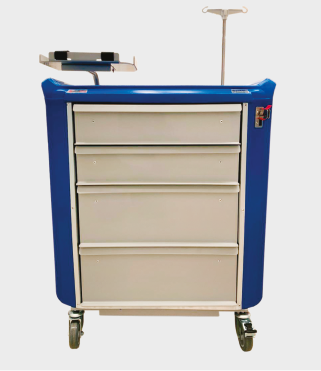 - Superfície Superior: Espaço amplo e resistente, adequado para acomodar equipamentos como desfibriladores e monitores.