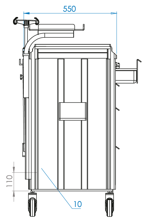 - Rodízios: Rodas de alta durabilidade, com sistema de freio, garantindo mobilidade e segurança durante o uso.